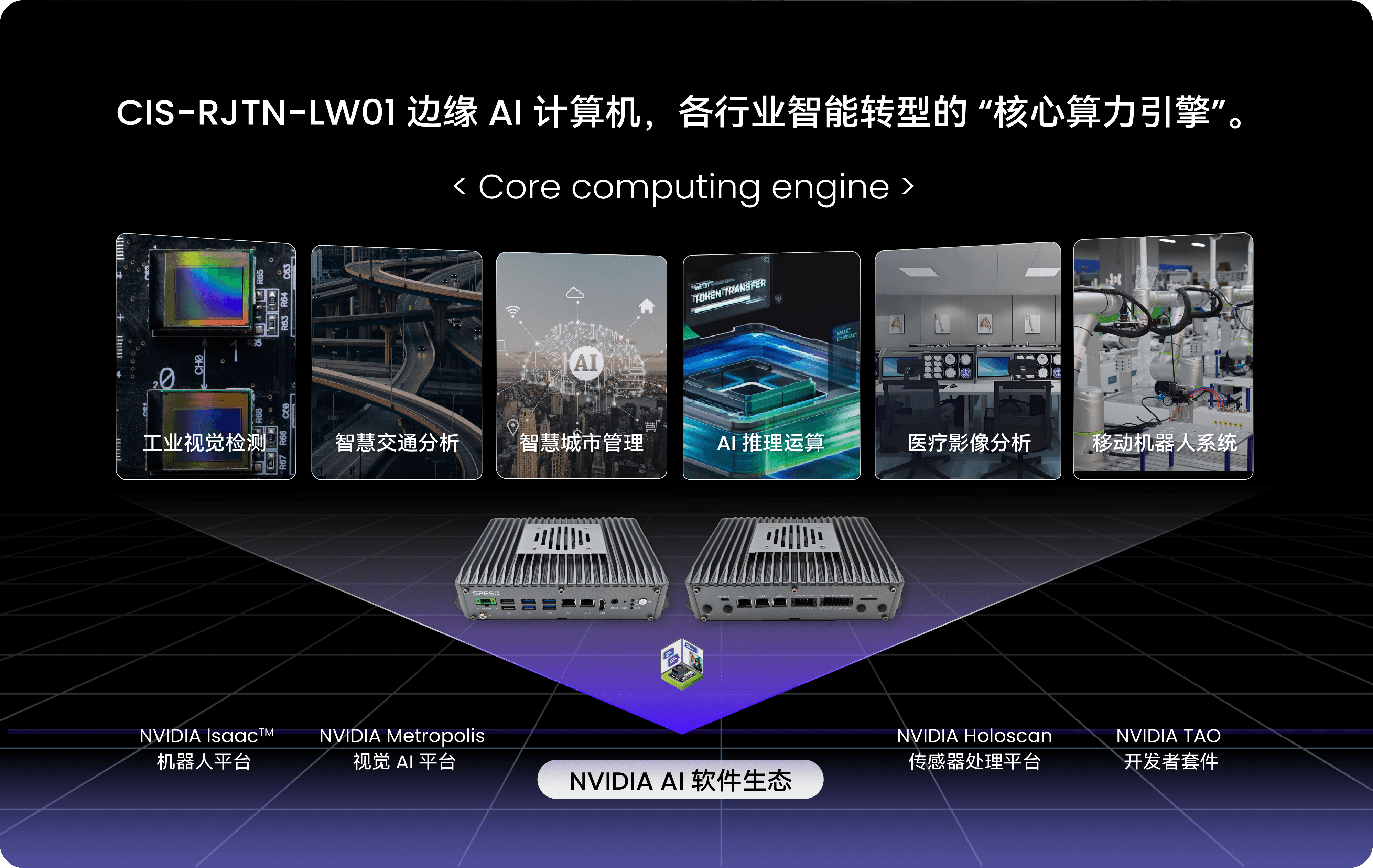 源控 CIS-RJTN-LW01 边缘 AI 计算机以强悍性能为核、稳定可靠为基,将高效算力直接输送至场景一线,成为各行业智能转型的 “核心算力引擎”,具有广泛的应用场景,可应用于工业视觉检测、智慧交通路口分析、智慧城市、AI 推理任务、医疗影像分析、移动机器人系统等领域。