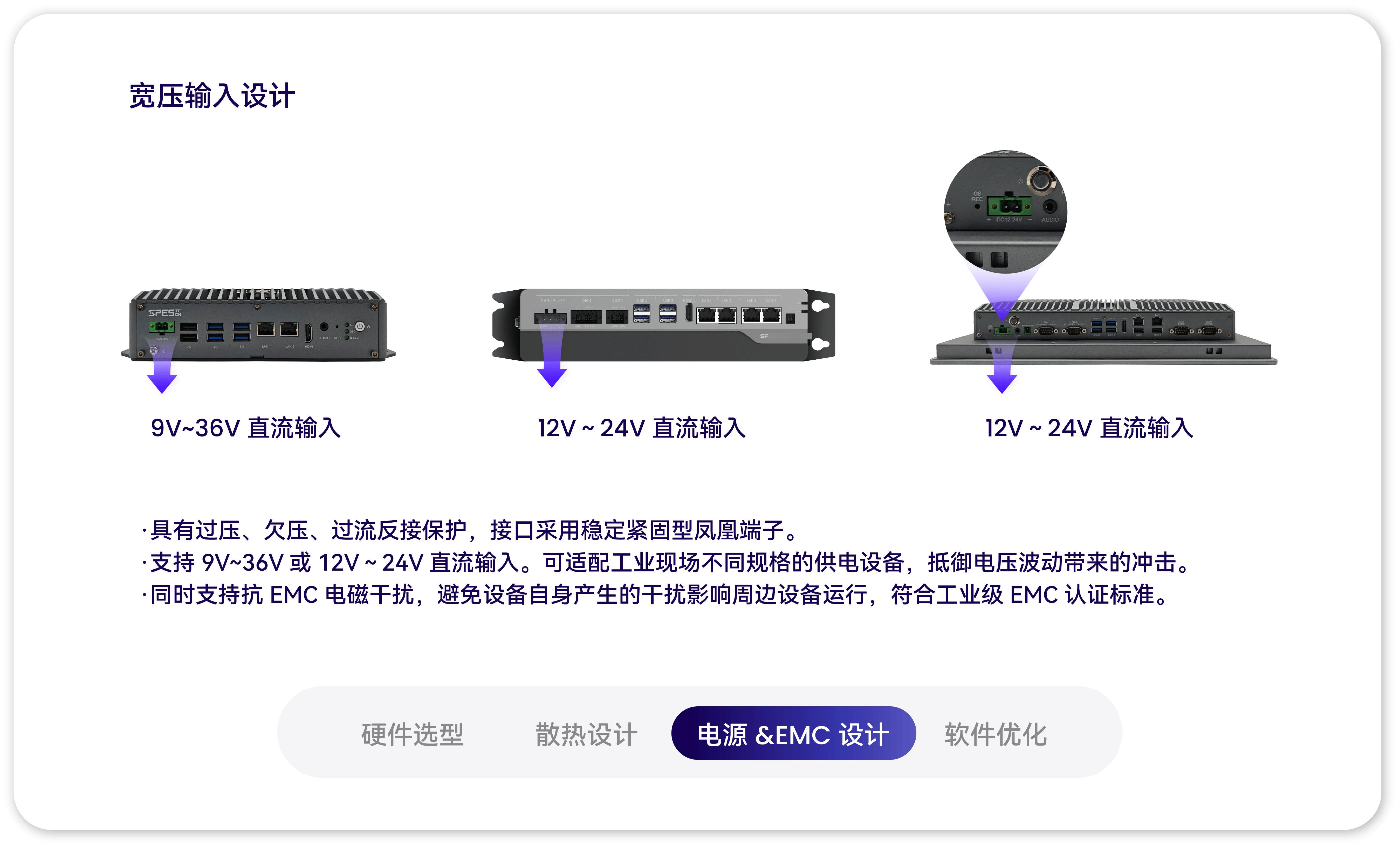 工业现场的电压波动、瞬时断电、电磁干扰等问题,是影响设备稳定运行的重要因素。源控通过精细化电源管理设计,打造 “抗干扰 + 冗余保障” 的供电体系,确保设备在复杂供电环境下不掉线、不宕机。