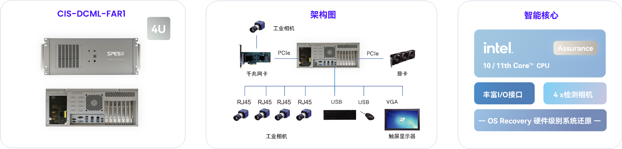 基于用户需求,源控提供了 CIS-DQ47-FAR1 4U 上架式箱体电脑,该系列产品具备以下优势: