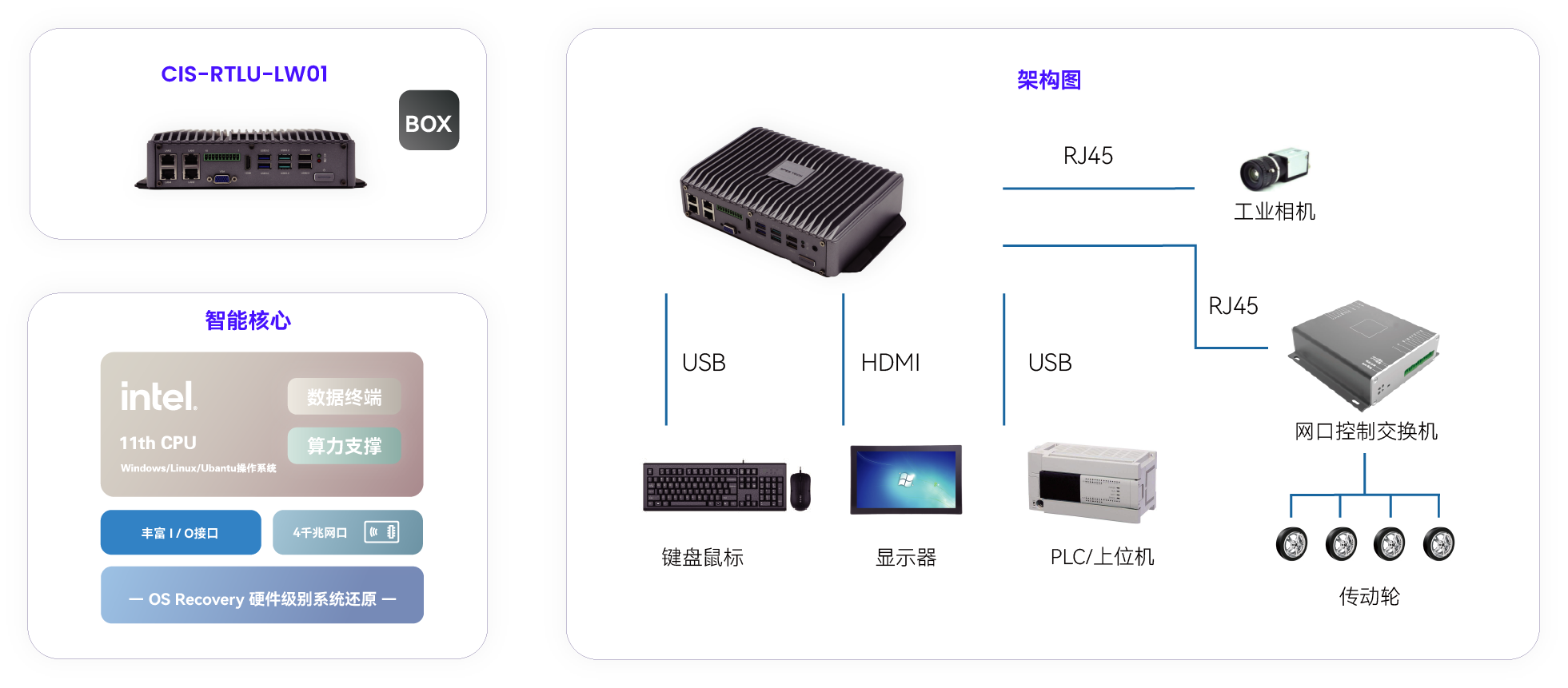 作为数据采集、交互终端,产品支持 Intel® 11th 处理器和 Windows/Linux/Ubuntu 操作系统,为焊接机器人系统输出焊接参数、运动轨迹等指令,以及保障工业相机在复杂工况条件下实现数据实时监测与传输,提供强劲算力支撑;