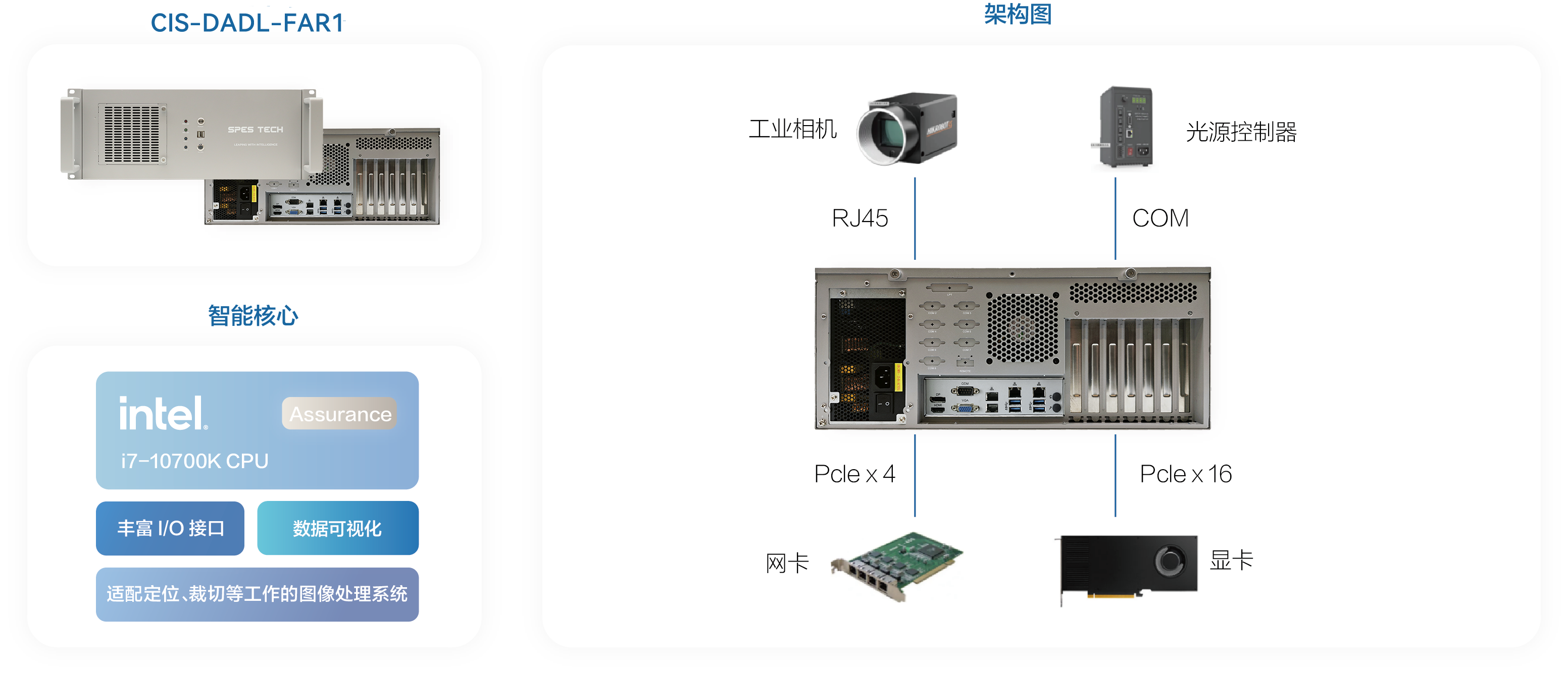 2.为实现外接光源控制器、工业检测相机、运动控制卡、图像采集卡等智能设备,需要具备极强扩展性;