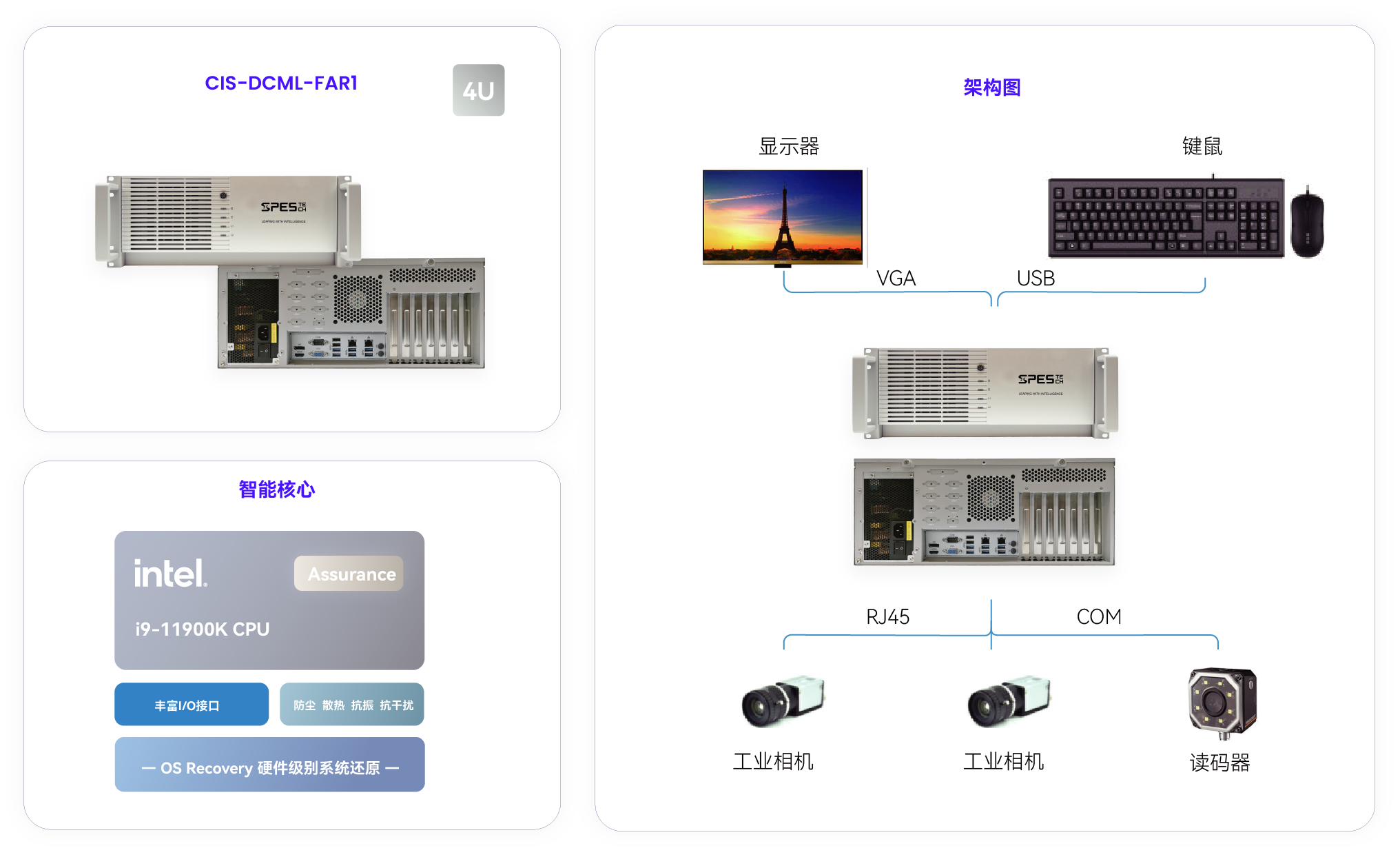 方案核心计算产品搭载 Intel® i9-11900K CPU,充分支持检测软件精准、稳定、快速运行,实现对所获取检测图像的分析与处理;
