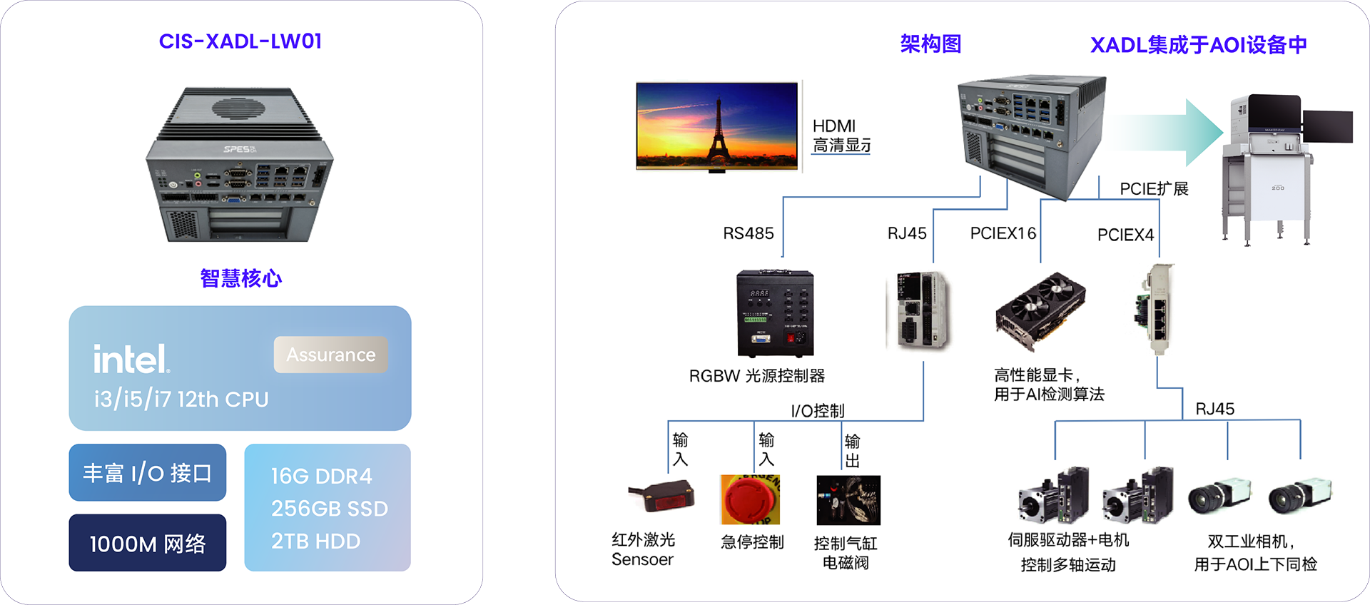Maker-Ray 镭晨作为智能光学检测方案提供商,专注于 PCBA 生产过程中的光学检测领域,产品涵盖 DIP 炉前、炉后 AOI,SMT 2D AOI、3D AOI、3D SPI、双面 AOI 以及涂覆检测设备。为了保障其 AOI 检测设备的强稳定性、高检出率、低误报率,镭晨科技对于设备中的核心计算单元-工业计算机提出极高要求: